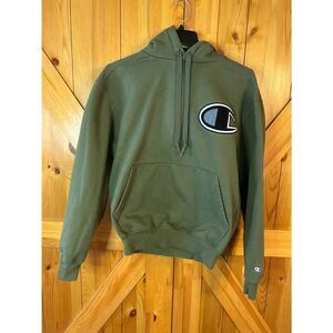 Champion Mens Pullover Hoodie with drawstring and front pocket. The hood only is Sherpa lined. Green. Size Small (5341)Measurements: Pit to Pit 22" Length 24.25"