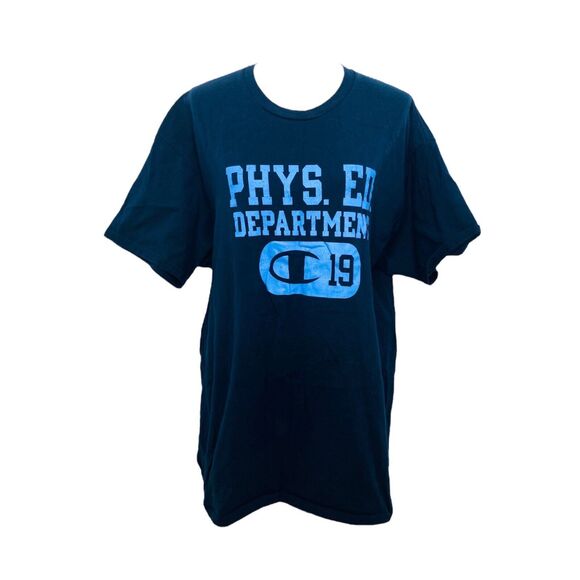 Champion Mens Size XXL Blue Short Sleeve Crewneck Shirt. Very clean and well kept lightly used condition. No major damage or stains that we saw at all. May have Some light wear from use and washing but still in very good condition.