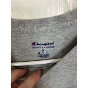 Champion Mens Shirt Size Medium Gray Classic Graphic Long Sleeve 100% Cotton e2