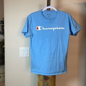 Champion Men's Size Medium Shirt Logo Short Sleeve Tee Blue Top