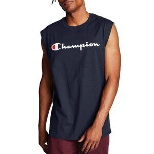 Champion Mens Sleeveless Muscle Tee Navy Blue Logo Print 2XL Cotton Blend Comfor