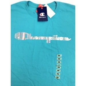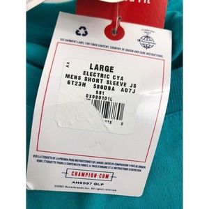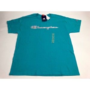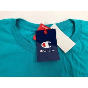 Champion Mens T-Shirt Crew Neck, Short Sleeve Tee Shirt Top with Logo Aqua Sz L