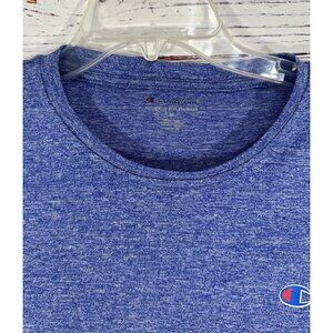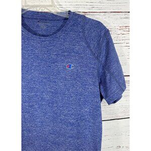 Champion Mens T-Shirt Tee Size Medium Heathy Blue Short Sleeve Logo Polyester