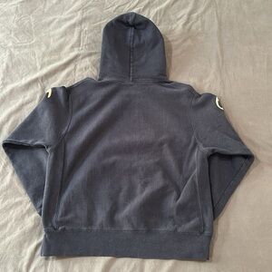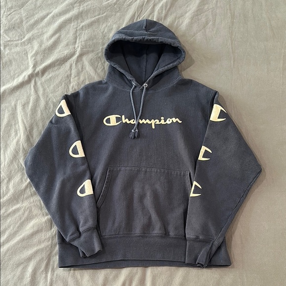 Cozy hoodie with Champion logo. Features gold accents on sleeves. Perfect for casual outings.