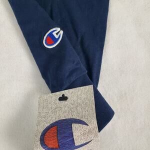 This Champion Michigan Alumni T-Shirt is a men's 2XL size in a solid blue color, made of cotton jersey fabric with a crew neck and long sleeves. It features the Champion logo as an accent and is machine washable for easy care. Designed for a regular fit, this lightweight t-shirt is suitable for all seasons and is ideal for outdoor and sports-themed activities. Made in Mexico, it is a versatile piece for winter, fall, and spring wear.