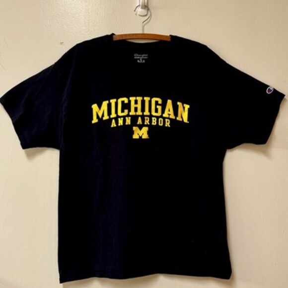 Champion Michigan Wolverines Mens Large T-Shirt Tee Shirt Blue Ann Arbor