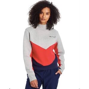 Champion Women's Colorblock Campus Mock Neck Sweatshirt Long Sleeve