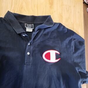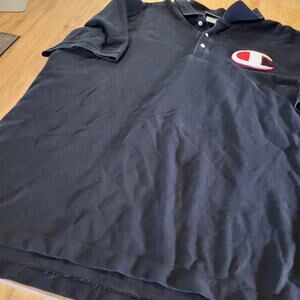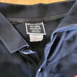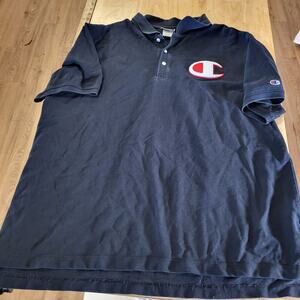 Champion NAVY blue Polo Large Chenille Logo Front & Back 2Xl 25" pit 2 pit 29" L