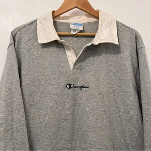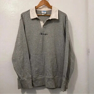 Champion NWOT Kanga Pocket Rugby Long Sleeve Shirt in Grey Collared Sz XL