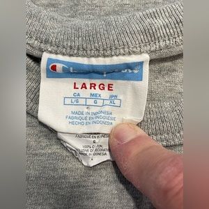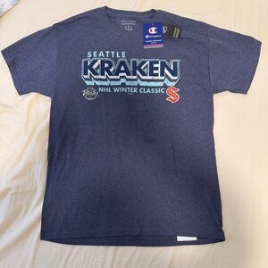 This shirt is perfect for any season, whether it's winter, summer, fall, or spring. It is available in a size large and is suitable for men. The shirt does not have any tags, but it is new and has not been worn. This Champion T-shirt is a great addition to any collection.