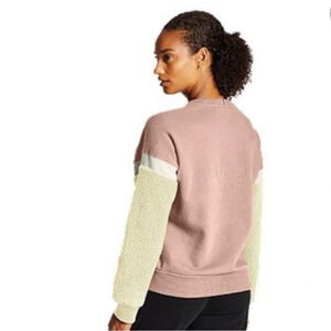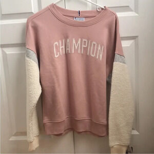 Champion NWT Heritage Sherpa Pullover Crewneck Sweatshirt Women Small Logo Pink