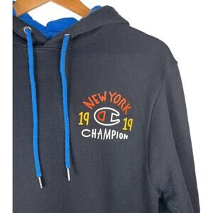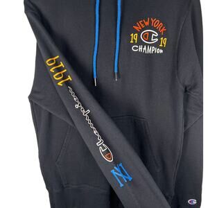 Champion New York 1919 Graphic Fleece Pullover Hoodie Sweater Black Mens Small