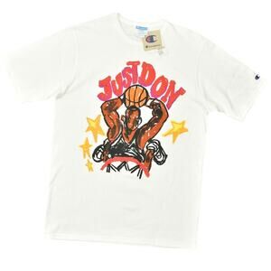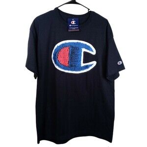 Simple crewneck tee with small Champion logo on chest. Soft cotton feel and relaxed fit. Neutral olive color for easy pairing.