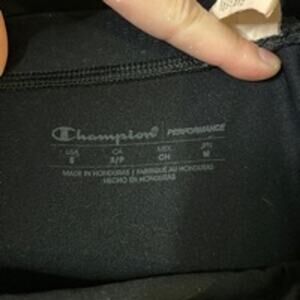 Stay stylish and strong in these Champion Performance black leggings. Designed with a stretchy athletic fit, these high-rise leggings feature a wide waistband and breathable compression-perfect for workouts, yoga, or everyday athleisure. Gently pre-loved and built to move with you.