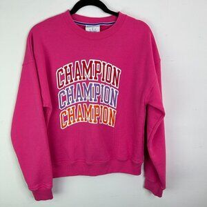 Champion Pink Crewneck Sweatshirt Stacked Logo Pullover Comfy Everyday