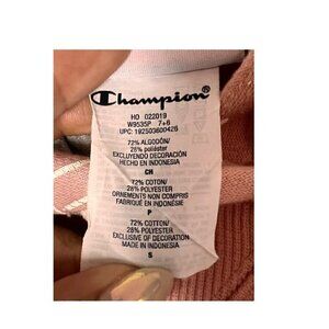 Color(s): Salmon | Pink with white Champion logo across the garment