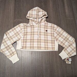 Champion, Plaid Cropped Hoodie, Size M, NEW with tags