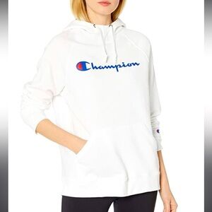 A script logo updates this go-to from Champion, a plus size hoodie with a hip-length silhouette for added coverage.