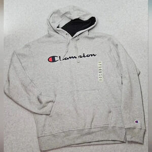 Champion Powerblend Hoodie Oxford Gray Script Logo Standard Fit Men's Size M