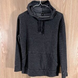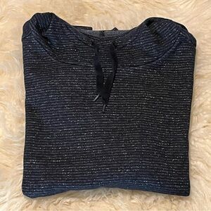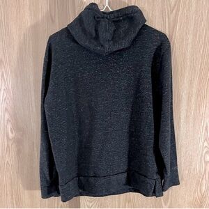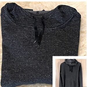 This cozy sweatshirt is in great condition. It’s soft, warm for cold weather, is hooded and has a cowl neck with a big kangaroo pocket in front.
