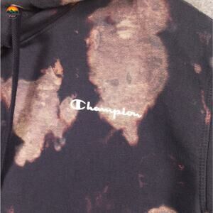 Champion Pullover Hoodie Black Cropped Bleach Tie Dye Streetwear Festi Women's M