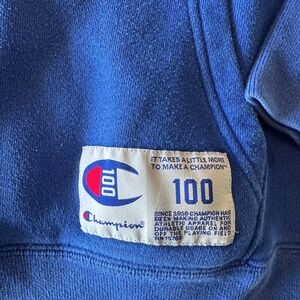 Champion Pullover Hoodie – L (Blue with Red/White Graphic)