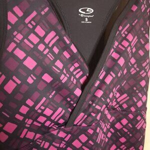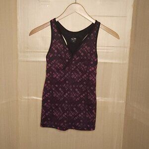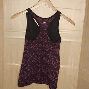 Champion women’s purple geometric print athletic tank top small. Gently used condition. Measurements are: 25” from shoulder to hem and 13” from armpit to armpit.