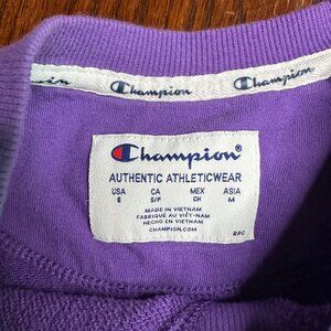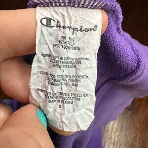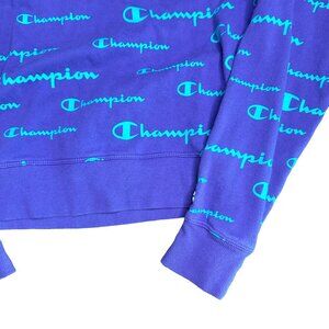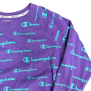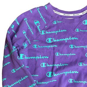 Minimal fading! Fun color! Champion's Purple Logo Green Print Crop Sweatshirt in size S is a stylish and comfortable choice. Crafted from a soft cotton blend, this sweatshirt features a bold green logo print.