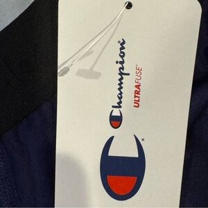 Navy joggers with yellow and white accents. Comfortable fit. Perfect for active wear.