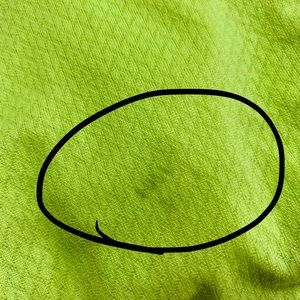 Bright neon yellow. Built in bra. No padding. Slight little stain on the front. Hardly noticeable. Worn quite a bit. Nothing else wrong with it besides that slight discoloration! Too small for me now.
