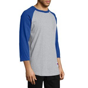 Champion Raglan Quarter Sleeve Baseball T-Shirt Gray Royal Blue Mens Size Small
