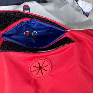 Champion Raincoat Hooded Packable Dog's Jacket Size Large Red Grey Navy NWT