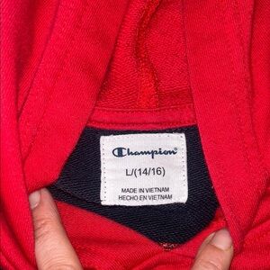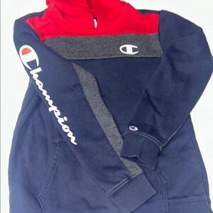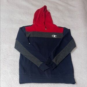 Champion Red and Blue Pullover Sweatshirt with Color-Block Design