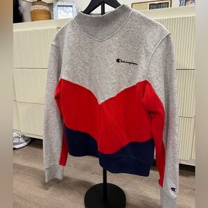 Embrace comfort and style with the Champion sweater, showcasing a bold red and gray color scheme. This crew neck design offers a relaxed fit, perfect for casual outings or cozy days at home. The classic Champion quality ensures durability and timeless appeal.
