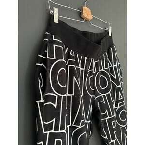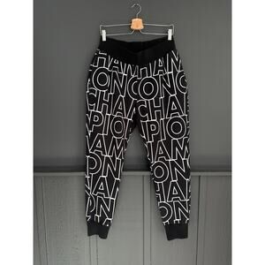 Champion Reverse Weave Black All Over Print Spellout Jogger Sweats Size Large