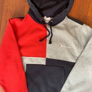 Champion Reverse Weave Colorblock Hoodie Men’s Red Gray Navy Sweatshirt