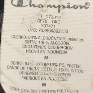 Features a stylish faded black color and the iconic Champion spellout logo.