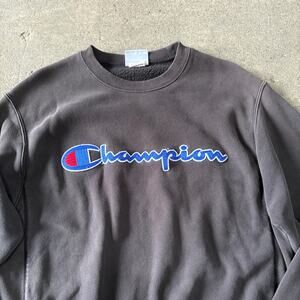 Champion Reverse Weave Crewneck Sweatshirt Mens M Faded Black Sweater Spellout