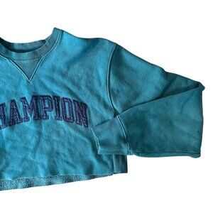 Champion Reverse Weave Cropped Teal Athletic Sporty Blue Sweatshirt S