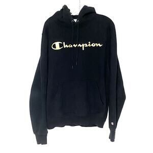Champion Reverse Weave Gold Logo Hoodie Sweatshirt Men L Athleisure Comfort Cozy