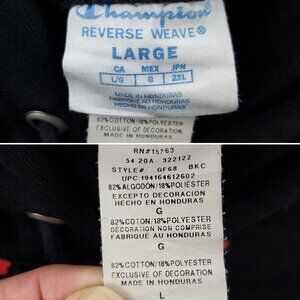 Champion Reverse Weave hoodie sweatshirt with embroidered Japanese Katakana (translates to "Champion"), men's size large. Ships safely in a secure box :)
