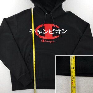 Champion Reverse Weave hoodie sweatshirt with embroidered Japanese Katakana (translates to "Champion"), men's size large. Ships safely in a secure box :)