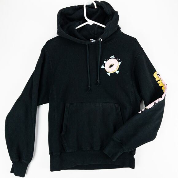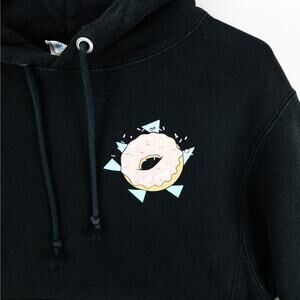 Champion Reverse Weave Hoodie Men’s Small Fresh Donuts Graphic Black Pullover