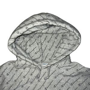 Champion Reverse Weave Hoodie Size Medium Gray Print All Over Heavyweight Hoodie