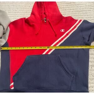 Champion Reverse Weave Hoodie Sweatshirt Women's Size Medium Red Blue Gray Colorblock 3W 052018 WL252 S9U 549302 738994931283