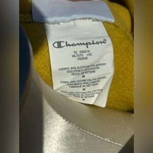 — Champion stitched logo on left sleeve + upper left chest