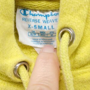 Champion Reverse Weave Mens Hoodie XS Yellow Big Embroidered Logo