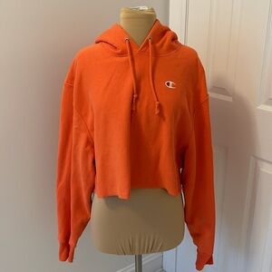 Champion Reverse Weave Orange Cropped Hoodie Sweatshirt
