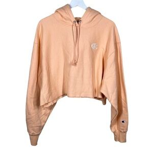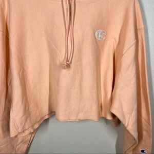 Champion Reverse Weave Peach Pink Orange Cropped Hoodie Sweatshirt