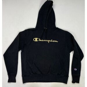 Champion Reverse Weave Pullover Hoodie Men Medium Black Logo Gold